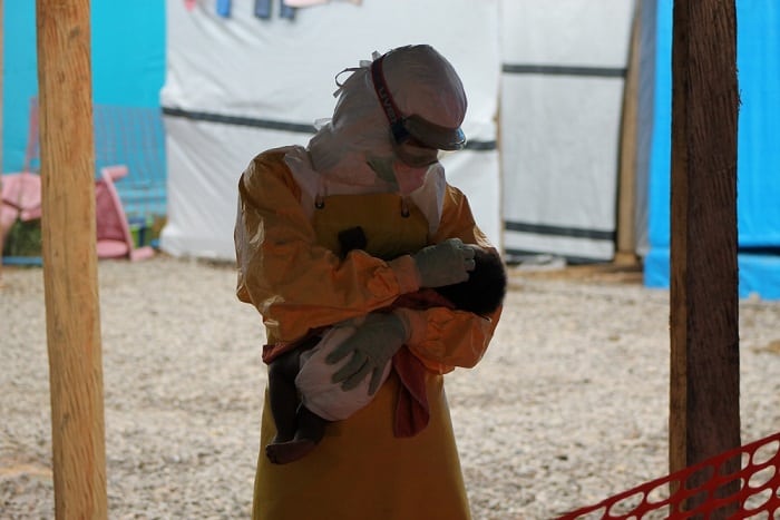 A Canadian nurse taking care of a little baby with Ebola in the Foya MSF Ebola isolation ward in Liberia. File Photo: Martin Zinggl/MSF
