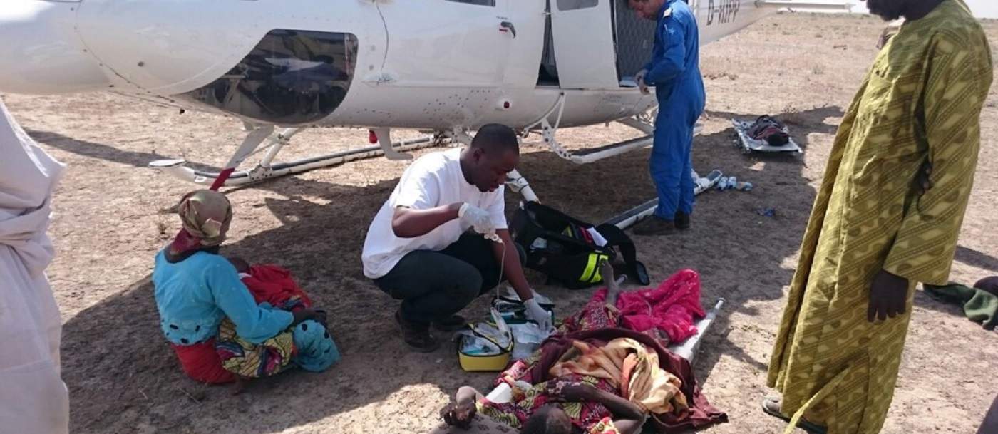 My colleague and I personally evacuated a number of severely injured patients, taking them to various hospitals in Maiduguri. One was a baby of six months, who had a piece of shrapnel embedded in his neck, leaving a puncture wound. In the helicopter, the child was crying uncontrollably. He was obviously dehydrated and his mother asked if she could give him something to drink. I handed her the water I had, and she poured some into her hand and into the child’s mouth. He gulped it in a way that was surprising for a baby of six months. Within a short time, he had fallen asleep.