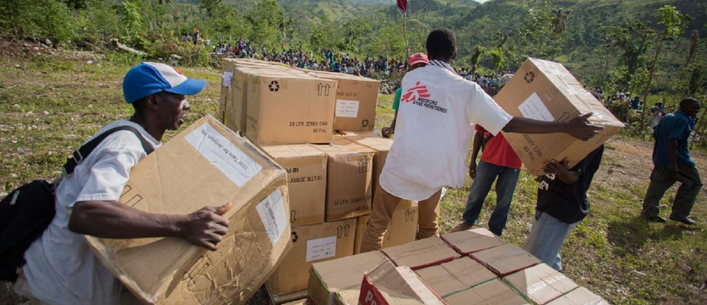 MSF has launched a massive distribution of building materials, hygiene kits, water storage equipment and purification tablets, blankets and energy biscuits in the most remote mountainous region of Sud-Ouest, in Haiti. Each of the 9,530 beneficiary families will also receive a set of 10 corrugated metal sheets, enough to rebuild a 12m2roof and provide shelter.