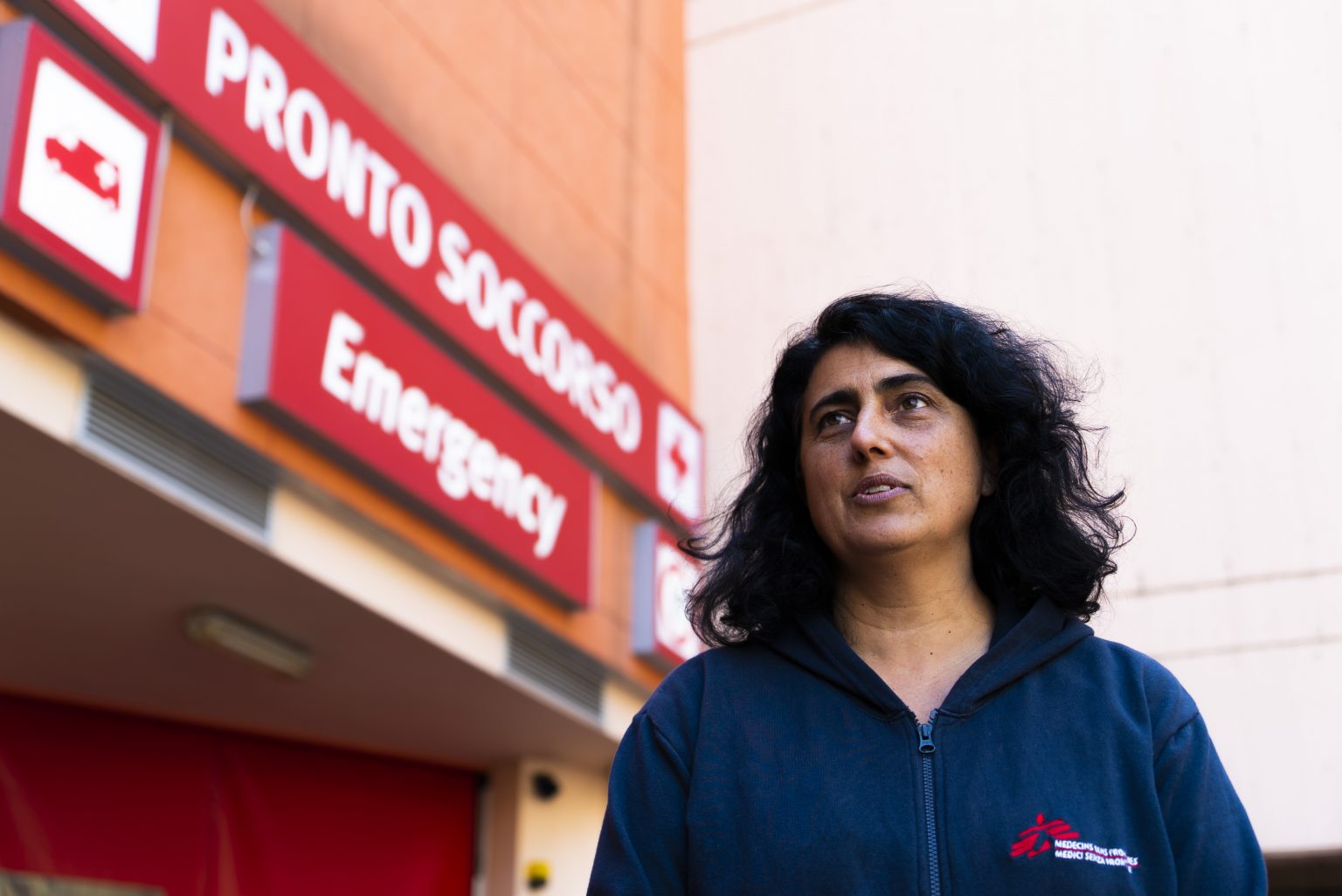 17 March 2020: MSF Italy president Dr. Claudia Lodesani is part of the MSF team working in Codogno hospital. We are currently supporting three hospitals in the Lombardia region, the first epicentre of the outbreak in Italy, with infection control and a few doctors present. © Davide Arcuri/MSF
