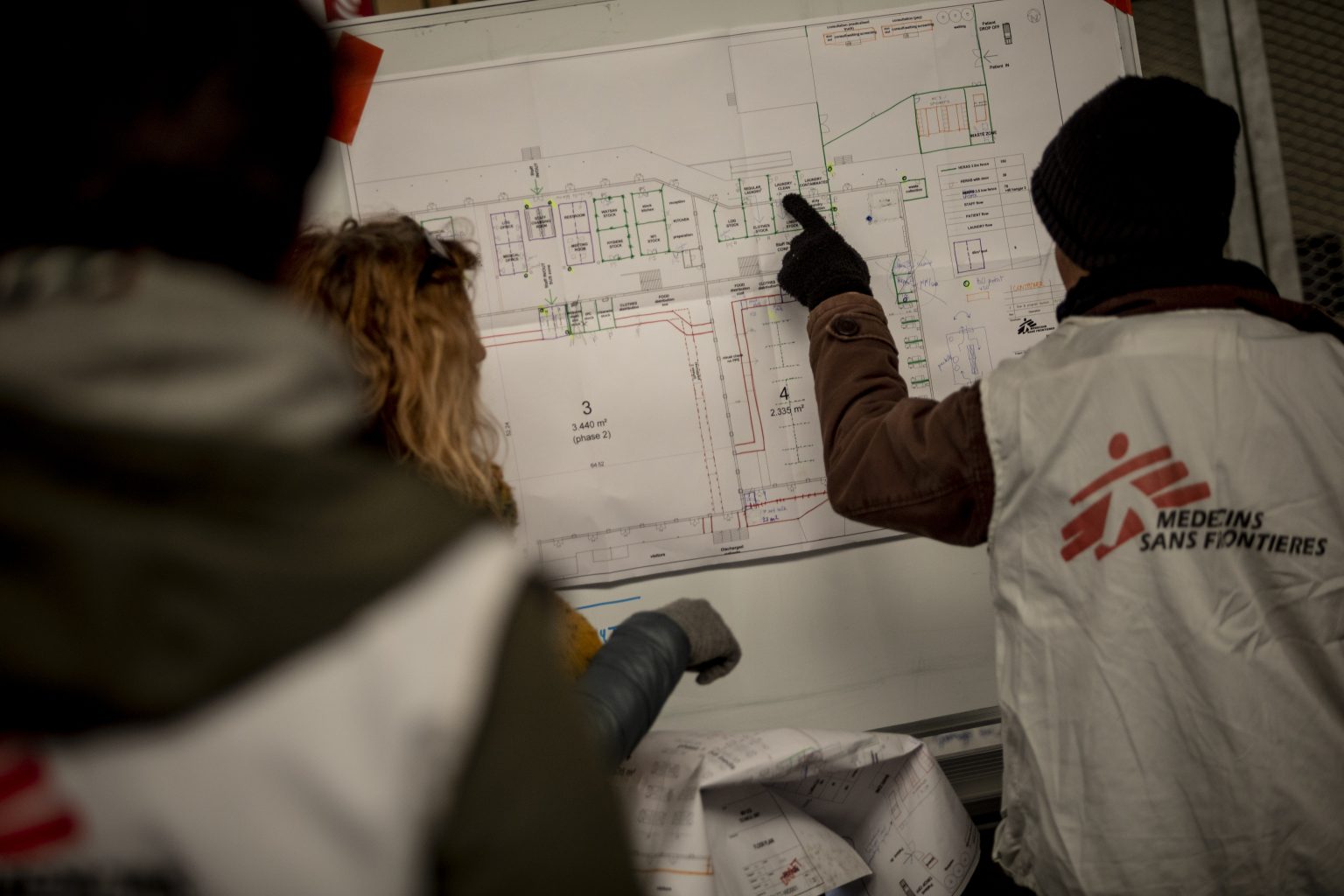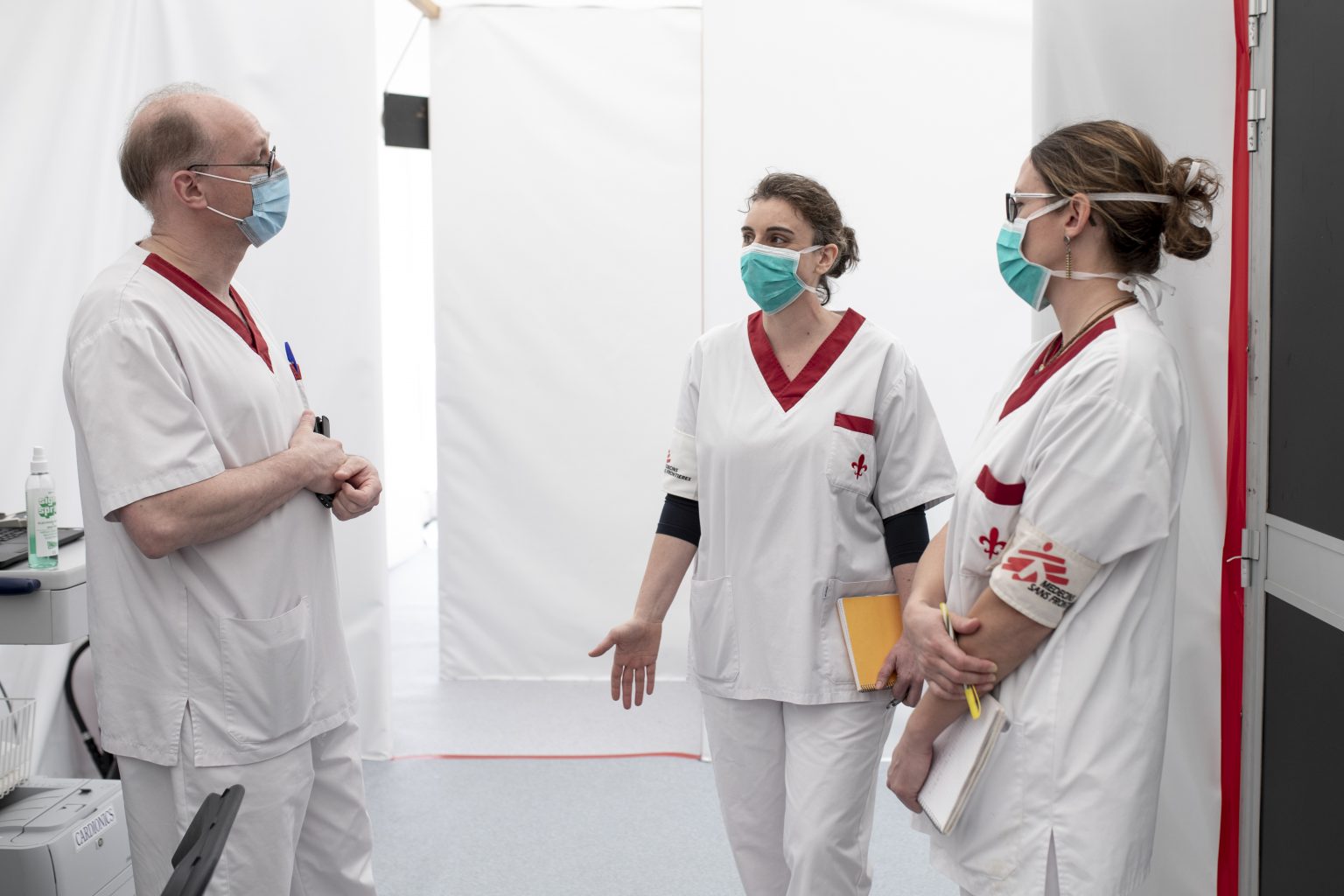 2 April 2020: As part of our COVID-19 response in Belgium, we are supporting the CHU Ambroise Paré hospital in Mons. Here, MSF and hospital staff discuss how best to manage the workflow. © Pablo Garrigos/MSF