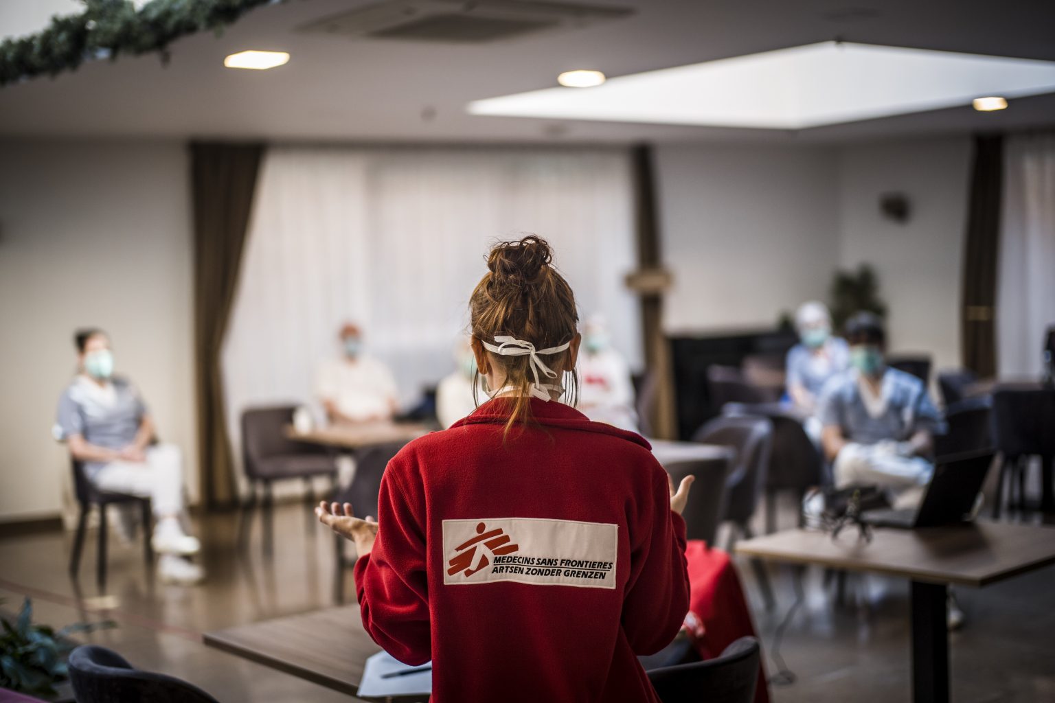 1 April 2020: More than 93 percent of COVID-19-related deaths in Belgium have occurred among the over-65s. To support local health authorities, we have sent mobile teams of nurses and health promoters to visit more than 150 care homes in Brussels. During their visits, the teams check if any residents are infected with the virus, organise the best way to isolate them and arrange medical care in the absence of regular visits by doctors. The teams also support and train care home staff on how to disinfect potentially contaminated areas and use protective equipment most effectively when it is in short supply. © Olivier Papegnies/MSF