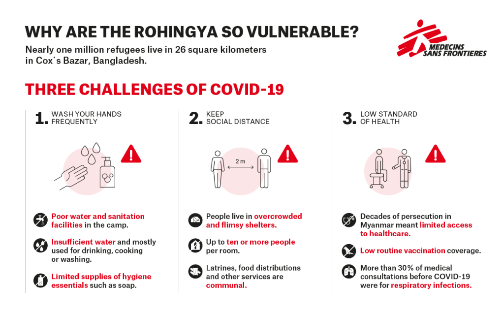 MSF is working round the clock despite these difficulties. To have a realistic chance at tackling COVID-19 amongst Bangladesh’s most vulnerable communities, all health actors and authorities must all work together hand in hand, in solidarity.