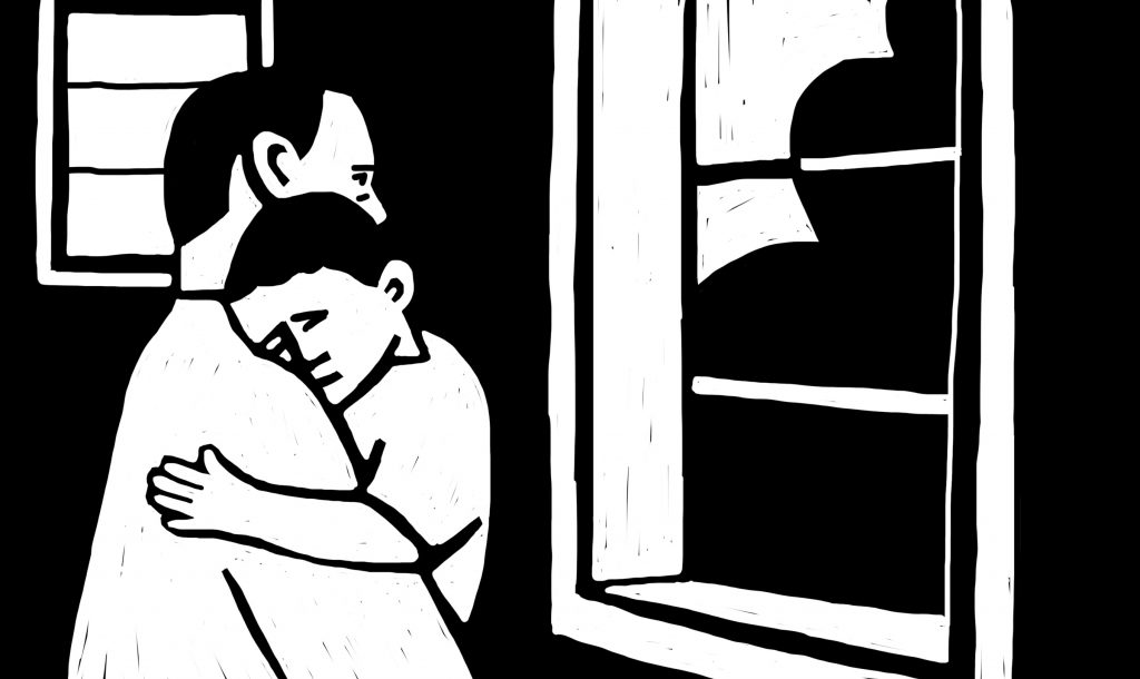 “I used to take them to hide in the bathroom or under the stairs,” Iman says. “Jana cries for no reason, and she’s always sad. She tries to reassure me, but I can see she’s not ok.”