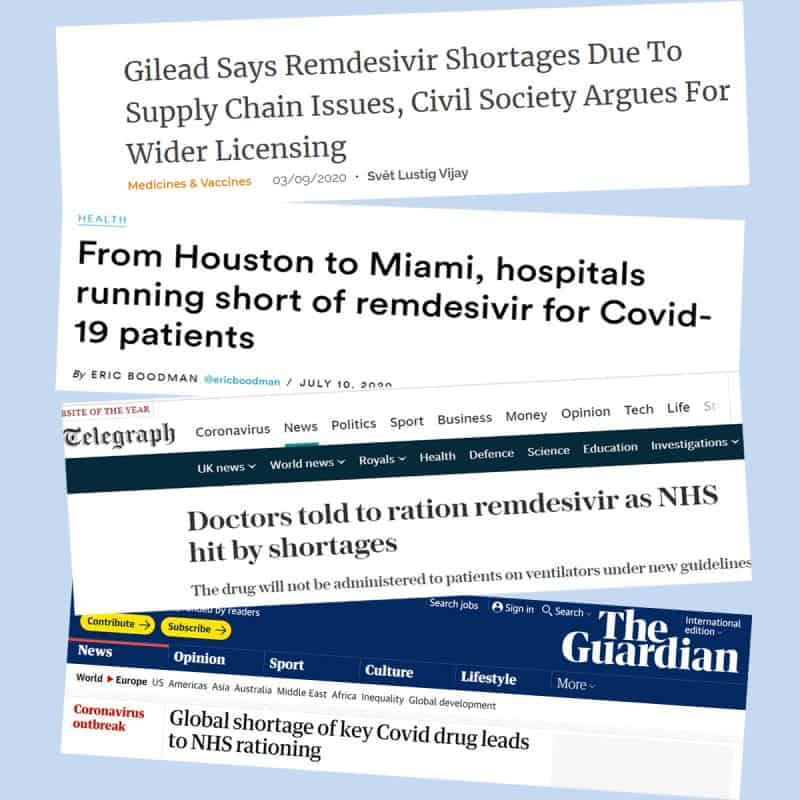 Gilead, the patent holder on remdesivir, the only drug so far approved specifically to treat COVID-19, have priced it at US$2,340 for a five-day treatment course in most countries.
