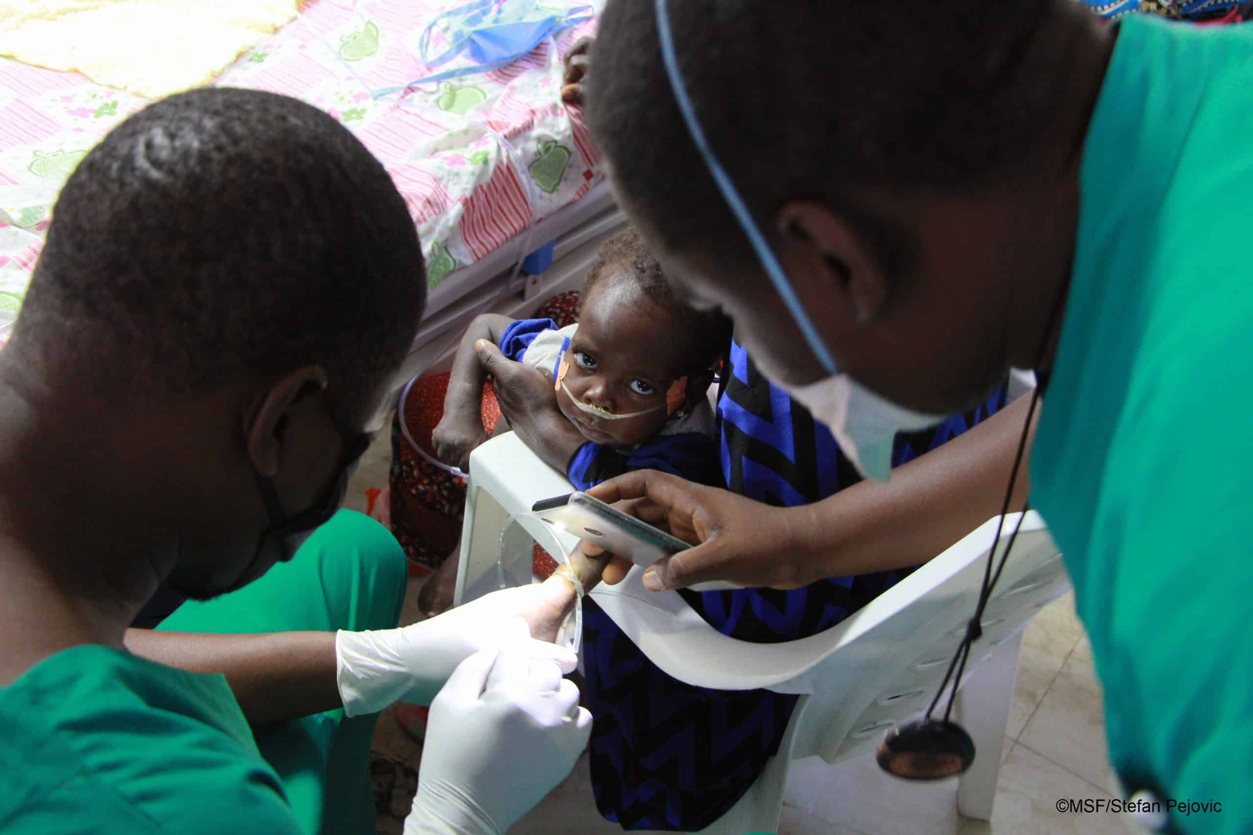 “He has been having this sickness for about a month, though he has sickle cell anaemia as well,” says Hajja. “If it weren’t for MSF, I wouldn’t have been able to afford his treatment, because Hussaini lost his parents and I too have been alone since my husband died.”