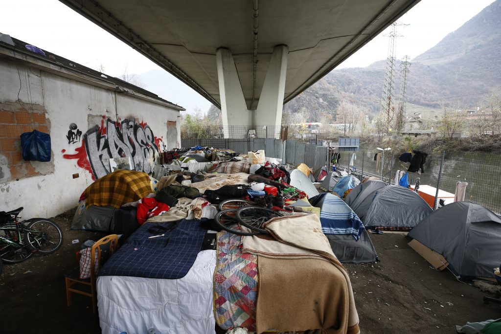 Around 120 migrants were living on the street in Bolzano in mid-December. People are still arriving in the city in the hope of crossing the border, but the Brenner Pass is closed and, compared to before, there are very few attempts to actually cross the border. Around 50 people are living in terrible conditions under the motorway bridge, amidst piles of rubbish, with rats running between their battered tents and with no access to clean water or toilets.