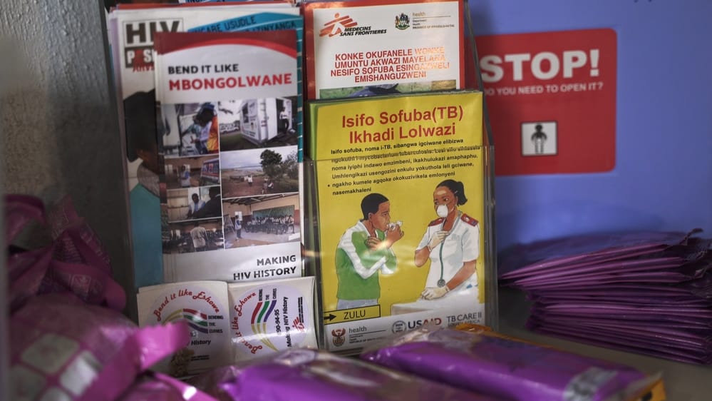 An information booklet at a Luyanda site, in the rural town of Vuma just outside Eshowe. Luyanda sites provide residents including adolescents of rural areas with access to health services like screening and testing for diseases like TB and HIV. Eshowe, KwaZulu-Natal, South Africa. Photo: TADEU ANDRE/MSF