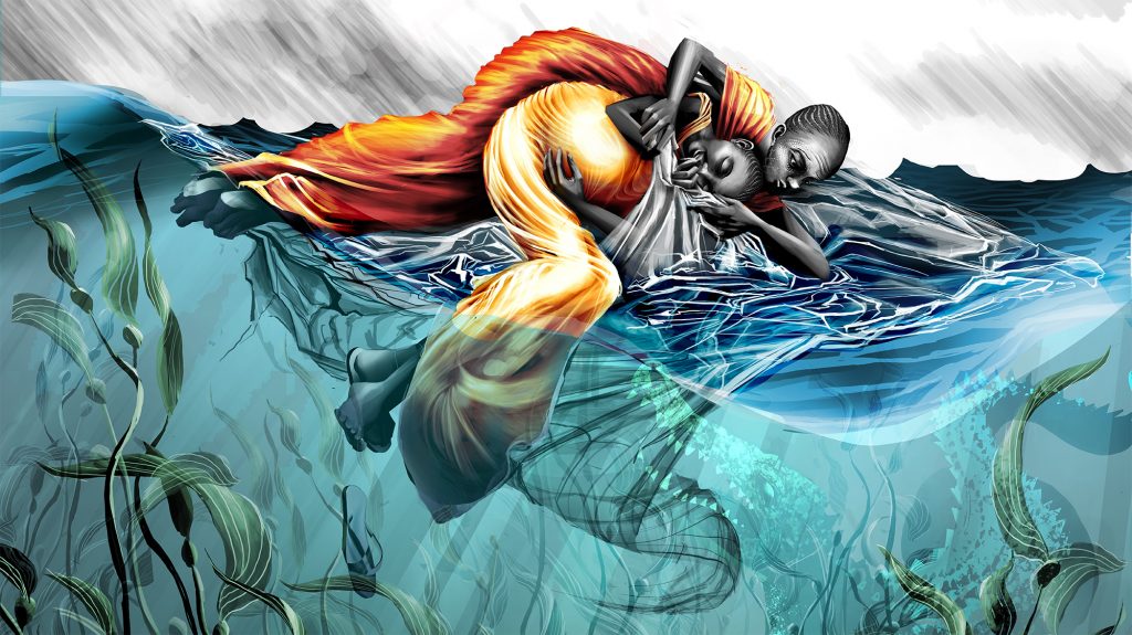 We are not able to swim. Only this thin sheet supported us. There was too much water. I thought the sheet would fold and we would fall.