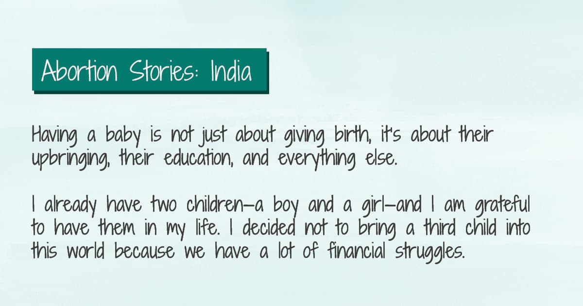 I didn’t tell anyone in my family. Nobody was aware of my abortion [except my husband]. What’s the point of telling anybody when all of them will advise against abortion? So I made the decision to not have a child for myself.