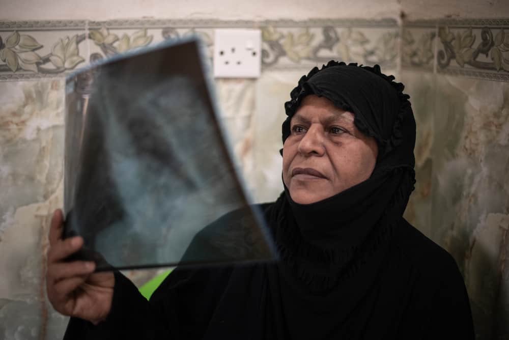 Hameeda looks at an x-ray of her lungs, following her successful treatment for multidrug-resistant tuberculosis using newer oral drugs. Baghdad, Iraq, September 2021.