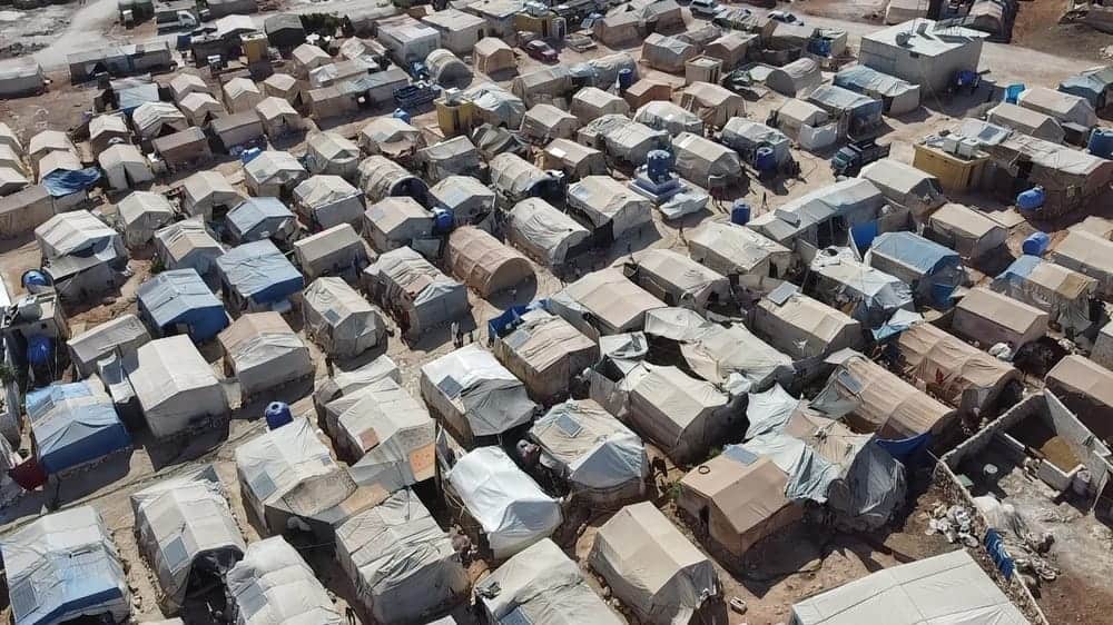 The tents of internally displaced people stretch out across a camp in northwest Syria, in which very poor living conditions and a lack of clean water pose serious health risks. Syria, September 2021.