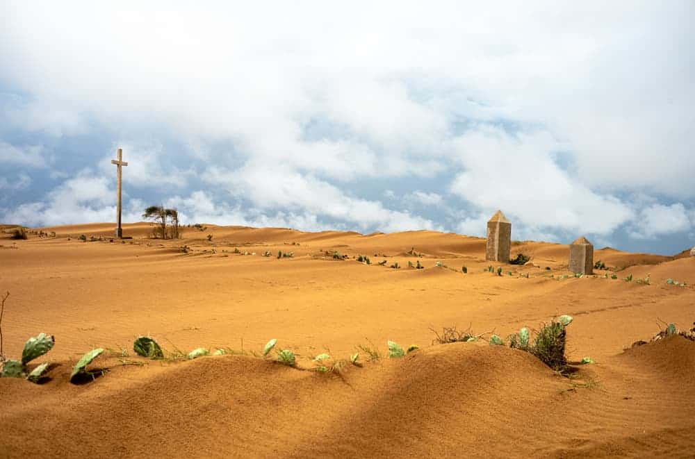 Formerly lined with cacti, roads are now buried under sand, a legacy of three consecutive years of drought. The ‘hunger gap’ – the period between harvests when food becomes scarce – is becoming more critical in desert regions. Anosy region, Madagascar, March 2021.