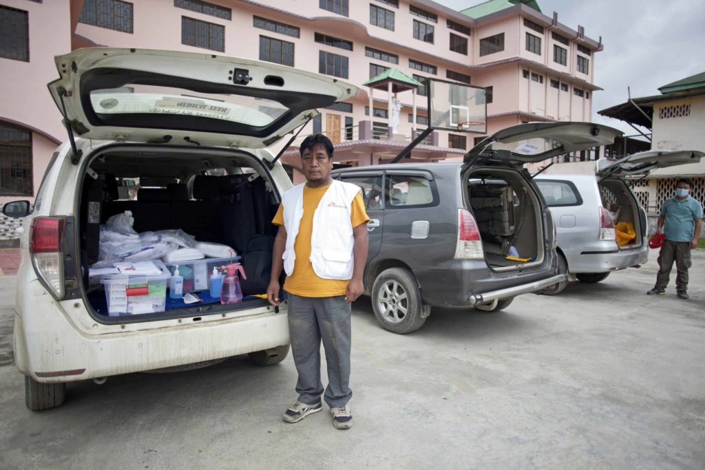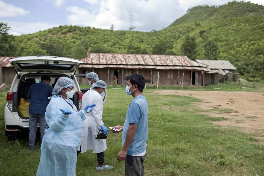 In order to reach people, cut off from the city’s health services and isolating at home, MSF formed mobile response teams comprised of doctors, health workers, and drivers who travelled several kilometers across the Imphal valley every day to visit people isolating with confirmed or suspected COVID-19.