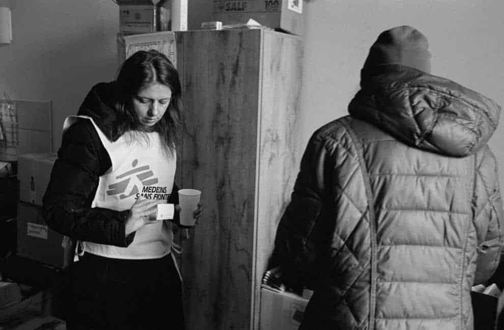 “The situation immediately became terrible. There were people with shrapnel injuries, bruises,” says Olena Yuzvak, a doctor who coordinates the clinic’s medical activities. “People were afraid. They simply didn’t know what was happening and they certainly weren’t ready for all of this.”