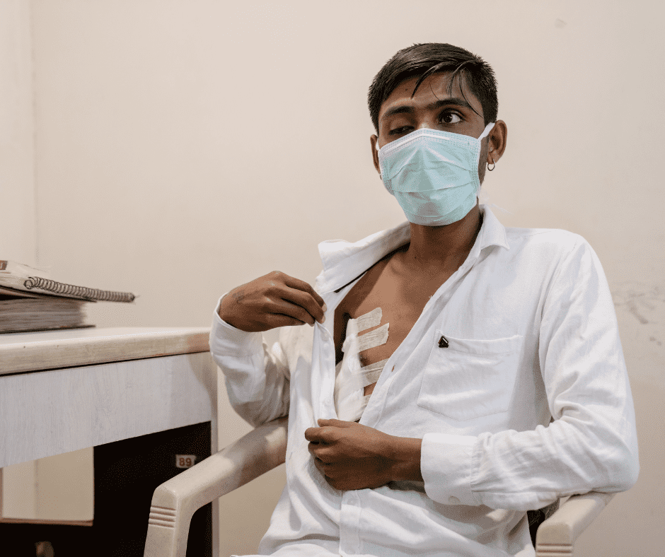 Once he was at the MSF clinic, based on the clinical assessment he was considered eligible for lung surgery and was the first person to be referred to the National Institute of Tuberculosis and Respiratory Diseases (NITRD) in Delhi for this. He underwent the operation at NITRD and his tube was finally removed. Later, he was put on a regimen of the DR-TB drugs bedaquiline and delamanid as well as intravenous treatment with the injection imipenem. After almost two years, his treatment was completed in November 2022. He has now fully recovered and will finally resume his work in the garment business.