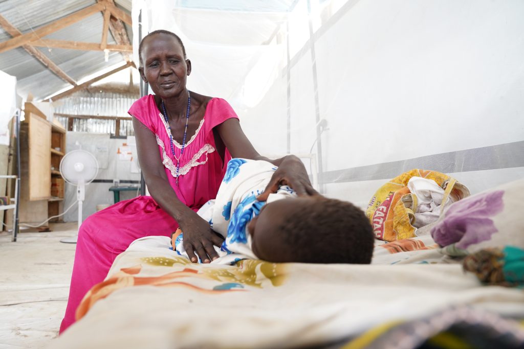 In Lankien, Jonglei state, where Médecins Sans Frontières (MSF) manages an 85-bed hospital, 60-year-old Nyandut Nyoach is sitting on the bed next to her four-year-old grandson, Yien, in the isolation ward for patients with measles. She brought Yien to the hospital with typical measles symptoms: high fever, cough and a rash. Yien’s fever was so high that he was having fits (febrile convulsions). Nyandut poured fresh water over his body to lower his temperature before beginning their walk to the hospital.