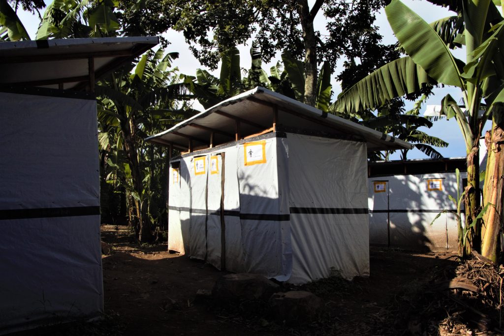 Showers and latrines constructed by MSF at the site for displaced people of Bweremana, on the border between North Kivu and South Kivu provinces, in eastern DRC. ©Igor Barbero