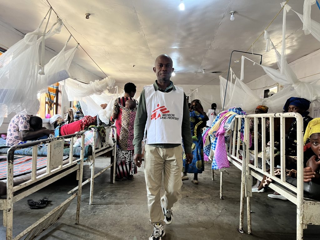 An MSF staff member walks through a ward full of patients at the Minova General Referral Hospital, in South Kivu province of eastern DRC. ©Igor Barbero