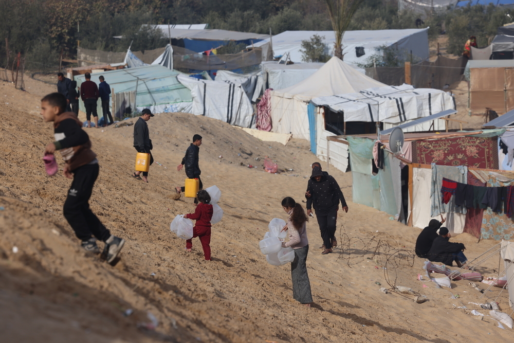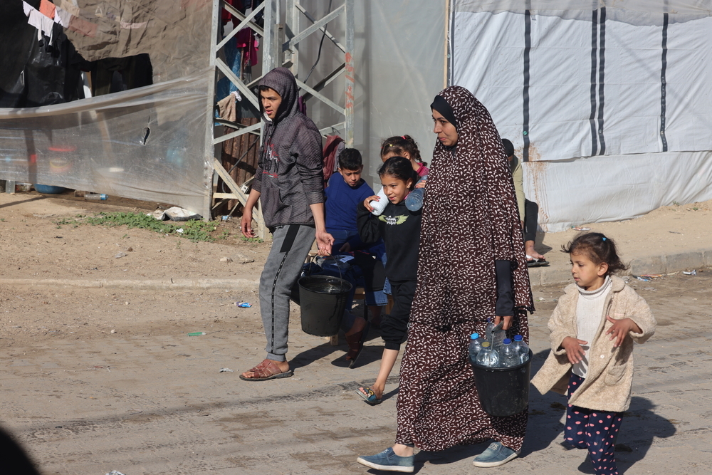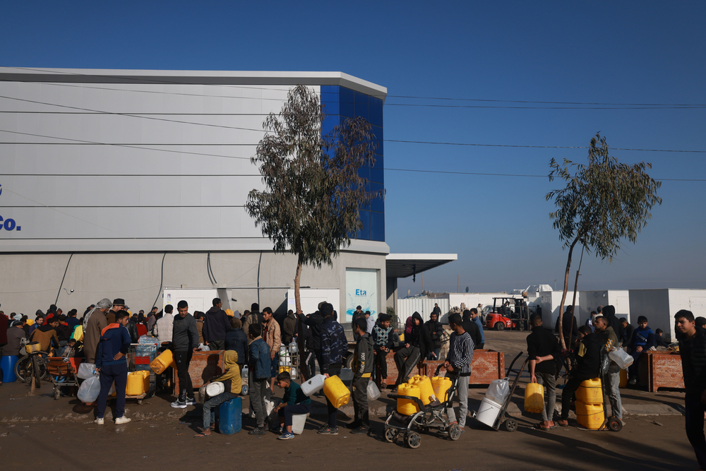 - Palestinians in Rafah on the Egyptian border – once a town of 300,000, but now hosting 1.5 million displaced people from all over Gaza – struggle to find clean water for drinking, cooking or washing. Living conditions for people in this part of the enclave are desperate – a result of the overcrowding and of the lack of clean water, toilets, showers and sewerage systems, aggravated by the cold winter weather.
