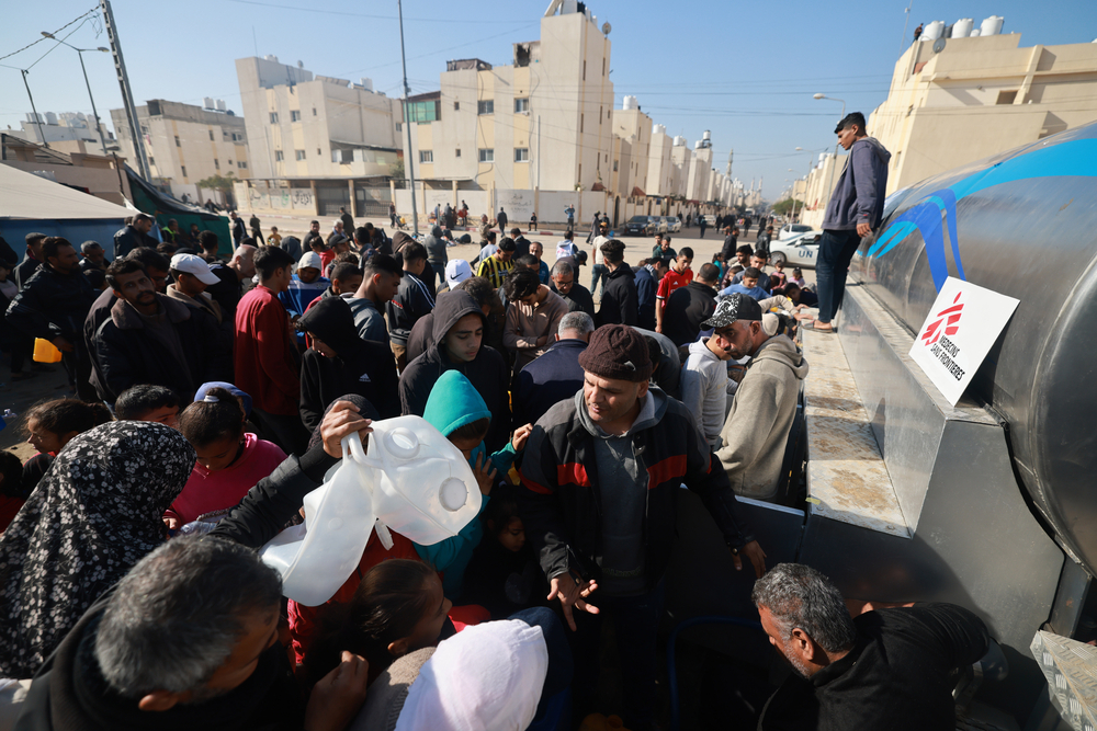 - To respond to some of the most urgent needs of the displaced people in Rafah, Médecins Sans Frontières teams started a water distribution programme in December 2023. Today, MSF water and sanitation teams are providing an average of 110,000 litres of safe drinking water per day to around 20,000 people. However, this is nowhere near enough to go around.