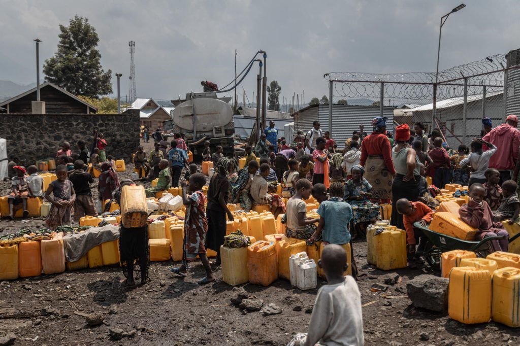 At a water collection in a displacement camp on the outskirts of Goma, Democratic Republic of Congo, August 2024. Michel Lunanga