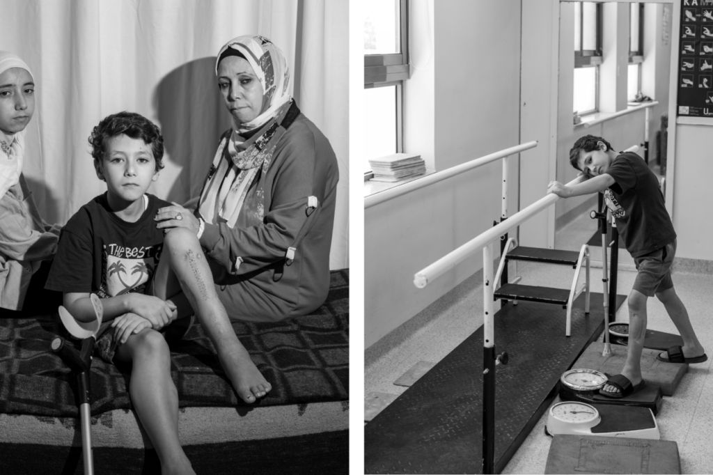 Today, Karam is smiling as he lets go of his crutches in the physiotherapy department and grabs hold of the parallel stabilizing bars to take a few steps forward. Before the war he had wanted to become a dentist, like his older brother Tareq, but since he was injured, he is not sure if it will be possible.