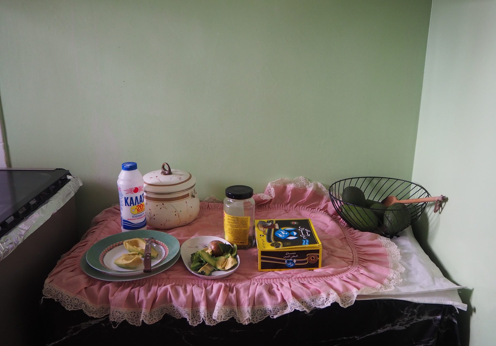 Cut avocados in Amina’s kitchen. Athens, Greece.