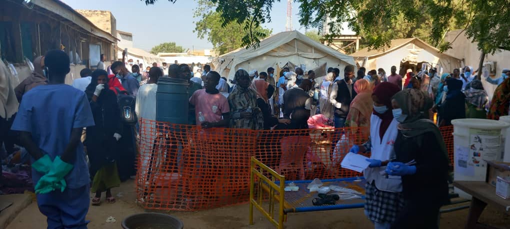 Patients have overflowed from the MSF-built cholera treatment centre in Kosti hospital, necessitating the use of the hospital’s adult and paediatric emergency rooms to provide additional space for treatment. The MSF team is collaborating with the Ministry of Health staff from Kosti Teaching Hospital and additional medical staff from Rabak hospital to manage the huge number of patients.