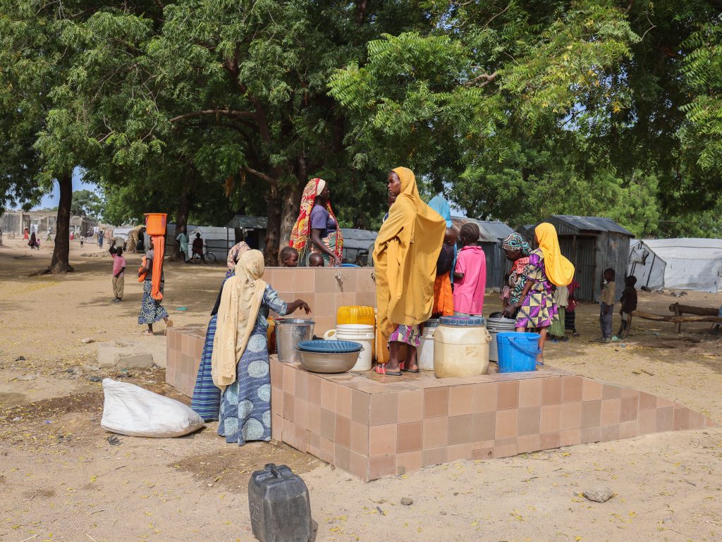 Internally displaced persons (IDPs) at a water fetching point in a camp in Gwoza local government area of Borno State, northeast Nigeria. Here, water is scarce and could take someone up to four hours to get potable water. ©️Abba Adamu Musa/MSF