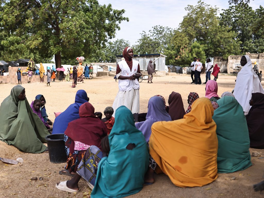 MSF Health Educator Amina Abdullahi during a health promotion session with women in a displaced persons camp in Gwoza local government area of Borno state, northeast Nigeria. ©️Abba Adamu Musa/MSF