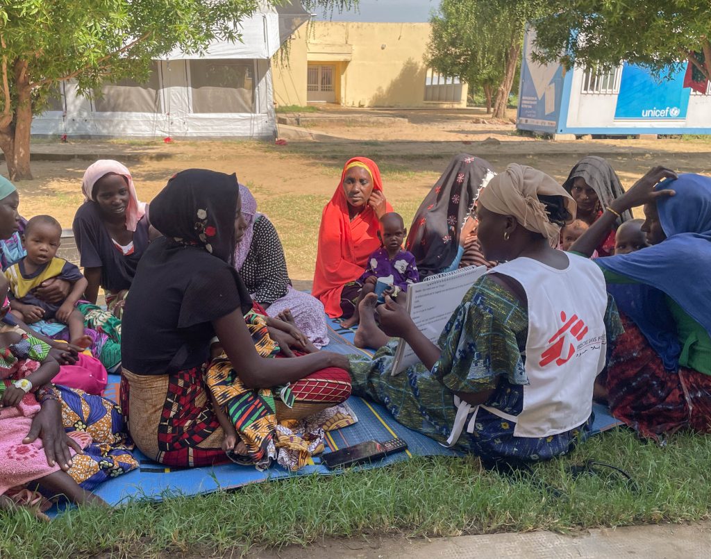 Grace, a health promotion officer with MSF, leads an awareness session on malnutrition for mothers at the Am Timan provincial hospital. ©Léa Gillabert/MSF